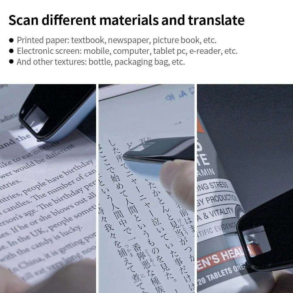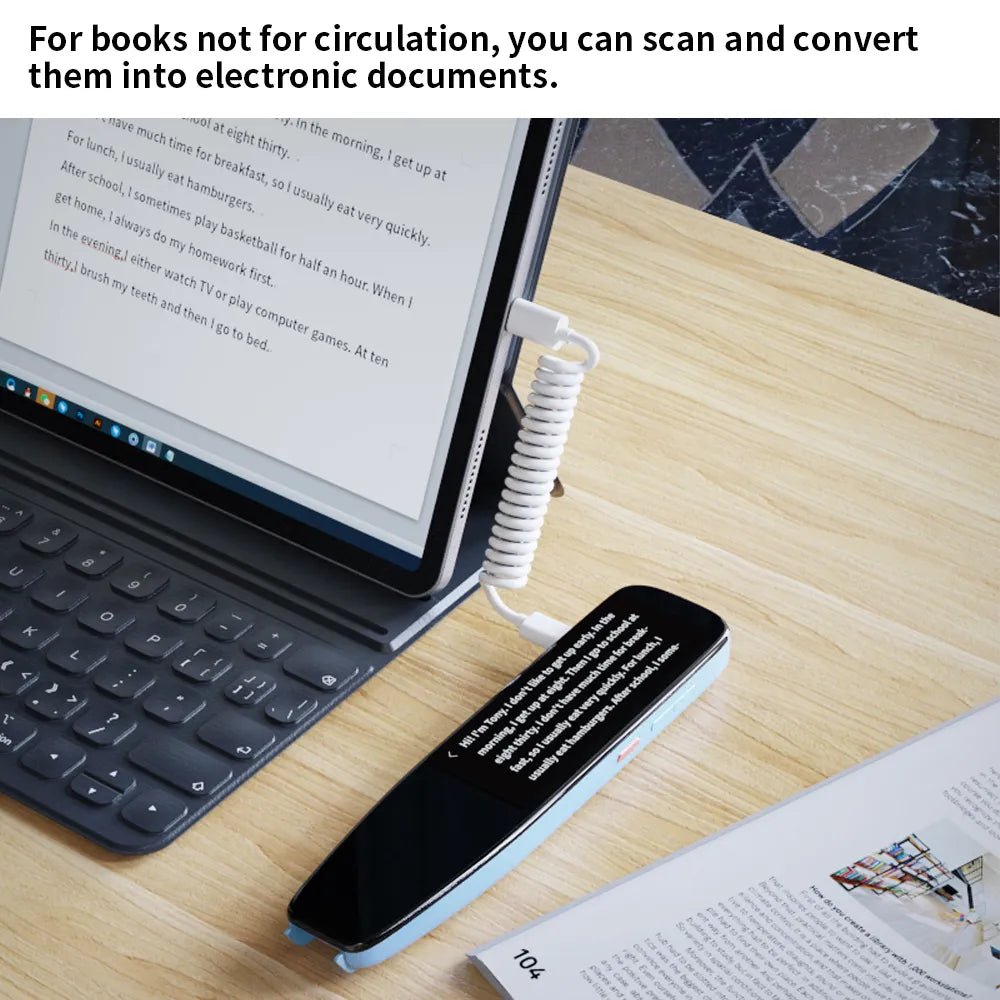 - يدعم قلم ترجمة المسح الضوئي المحمول إخراج الصوت للنص الأصلي ونتائج الترجمة. يمكن مسح النص وحفظه ويمكن نقل النص إلى جهاز كمبيوتر شخصي أو جهاز Mac عبر كابل بيانات USB بدون برامج إضافية. مسح 3000 حرف في الدقيقة. عملي.